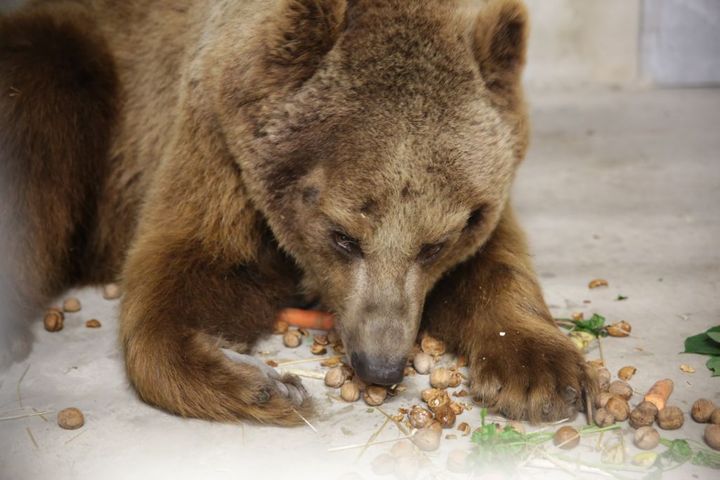 Dr Agnieszka Sergiel, specjalistka zajmująca się niedźwiedziami z Instytutu Ochrony Przyrody Polskiej Akademii Nauk, była zmartwiona tym, co zobaczyła: “Niedźwiedź nie ma pazurów oraz ma wyłamane kły. Skrajnie nieodpowiednie warunki odbiły się znacznie na jego stanie fizycznym. Ma niedorozwinięte mięśnie, problemy stawowe, a także problemy z chodzeniem. Widoczne są zwyrodnienia przednich łap i kolan.”