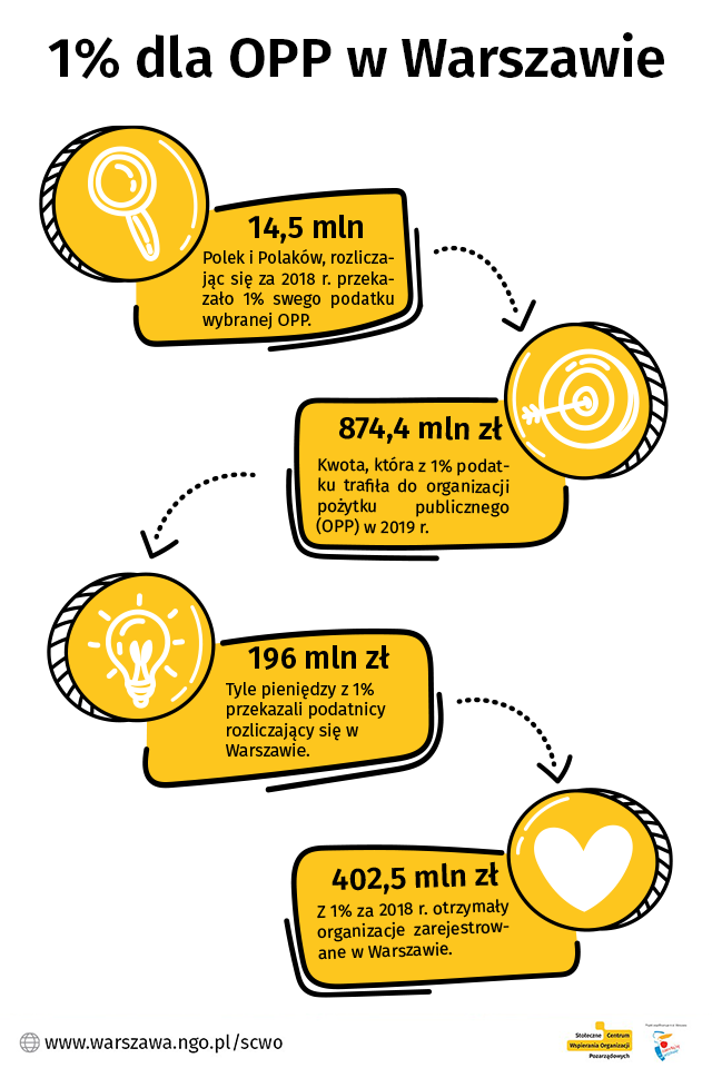 W zeszłym roku OPP zarejestrowane w stolicy otrzymały prawie połowę całej kwoty odpisów 1 % za 2018 r. W tym roku odpisy 1-procentowe będą organizacjom szczególnie potrzebne.