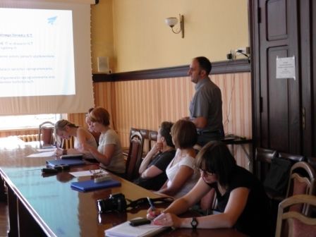 Główną część spotkania – szkolenie poświęcone możliwościom oferowanym przez nowe technologie - poprowadził Gerard Misiaczyk - Mobilny Doradca Fundacji Rozwoju Społeczeństwa Informacyjnego, który przestawił główne założenia programu Nowe Technologie Lokalnie oraz rolę Mobilnego Doradcy. Przedstawił też diagnozę problemów komunikacyjnych w relacjach urząd – organizacja pozarządowa oraz możliwości ich rozwiązania za pomocą nowych technologii. Szczególne zainteresowanie wzbudziły licznie zaprezentowane aplikacje google, narzędzia do synchronizacji plików, czy wtyczki do przeglądarek, ułatwiające codzienną pracę.
