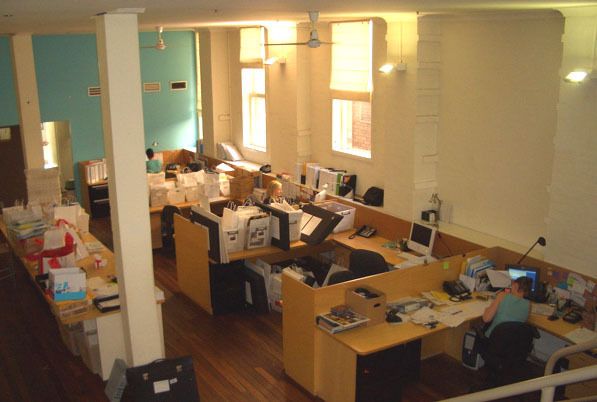 Na końcu korytarza otwiera się wielka sala wypełniona pogrupowanymi w segmenty biurkami i półkami pełnymi papierów. Wielkie banery czarnymi literami obwieszczają do kogo należy dany segment. Na wprost korytarza siedzą pracownicy Calidoscoop – agencji zajmującej się promocją kooperatywizmu i przedsiębiorczości społecznej w regionie, Alter Civites – firmy zajmującej się doradztwem i konsultingiem, Hobest zajmującego się innowacja w zarządzaniu organizacjami i zespołami ludzi oraz wspomnianego już Lab Coop.