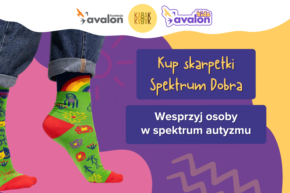 Fundacja Avalon czynnie działa na rzecz wyrównywania szans pomiędzy dziećmi z niepełnosprawnościami a pełnosprawnymi, poprzez prowadzenie terapii w Centrum Aktywnej Rehabilitacji pod okiem wykwalifikowanych specjalistów, w nowoczesnej przestrzeni zajęciowo-rehabilitacyjnej. Z okazji Światowego Dnia Świadomości Autyzmu, który przypada w dniu 2 kwietnia, powstały wyjątkowe skarpetki, które są wynikiem wspólnych działań z firmą KABAK, na rzecz realizacji projektów oraz zajęć dla dzieci i młodzieży w spektrum autyzmu.