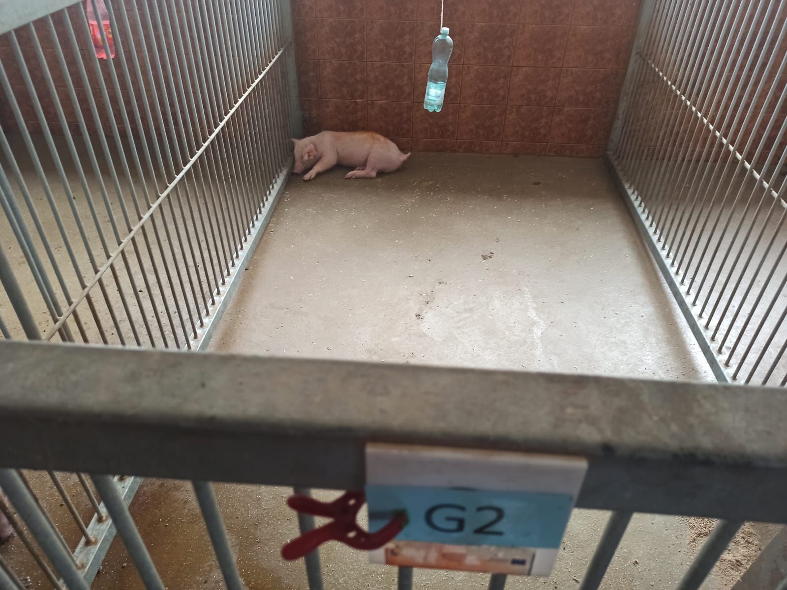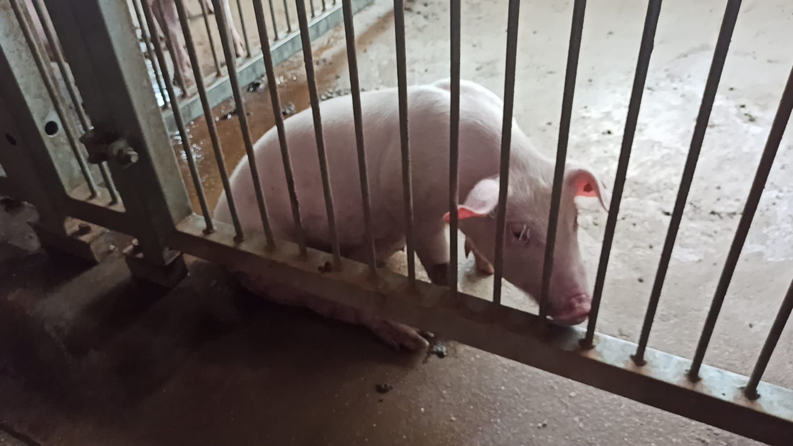 Podczas doświadczenia świnia z porażonymi tylnymi nogami była trzymana na betonie, na filmach widać, jak ciągnie za sobą tylne kończyny. Leży w kałuży moczu, inne zwierzęta trzymane są w bardzo brudnych kojcach, bez żadnej ściółki, bez zabawek. Niektóre kojce są mniejsze niż inne i tam utrzymywane były po trzy zwierzęta.