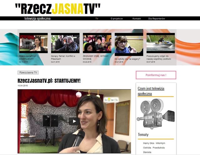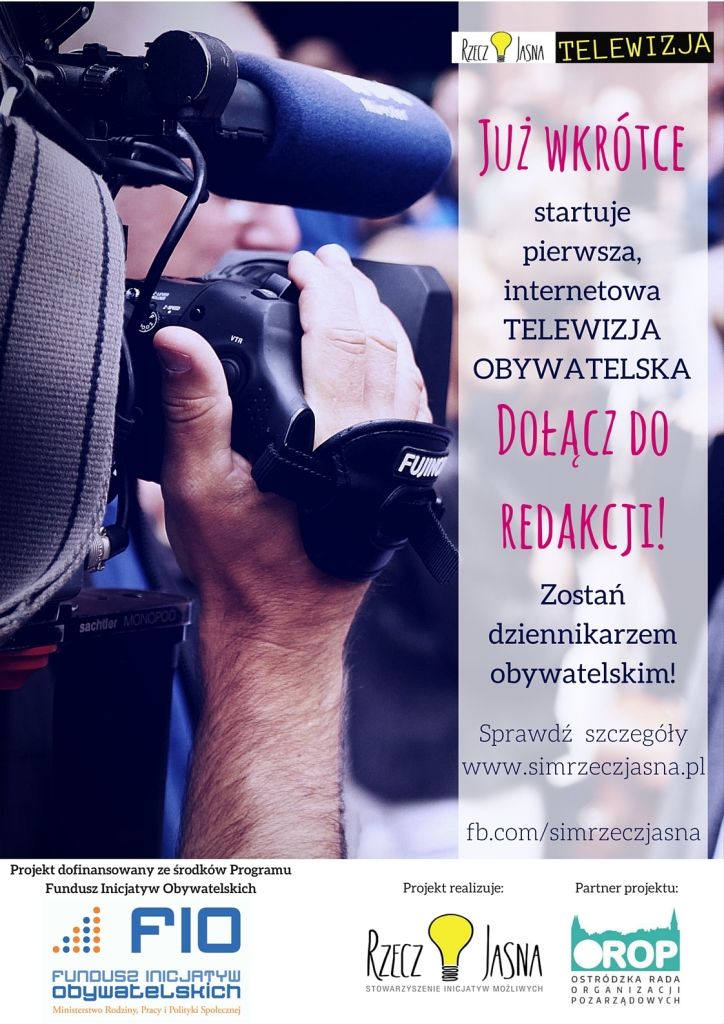 RzeczJasnaTV to medium dla społeczników i ludzi z organizacji pozarządowych, inicjatyw społecznych, edukacyjnych i kulturalnych. Pierwsza całkowicie społeczna i obywatelska internetowa telewizja lokalna na terenie Ostródy i powiatu ostródzkiego.