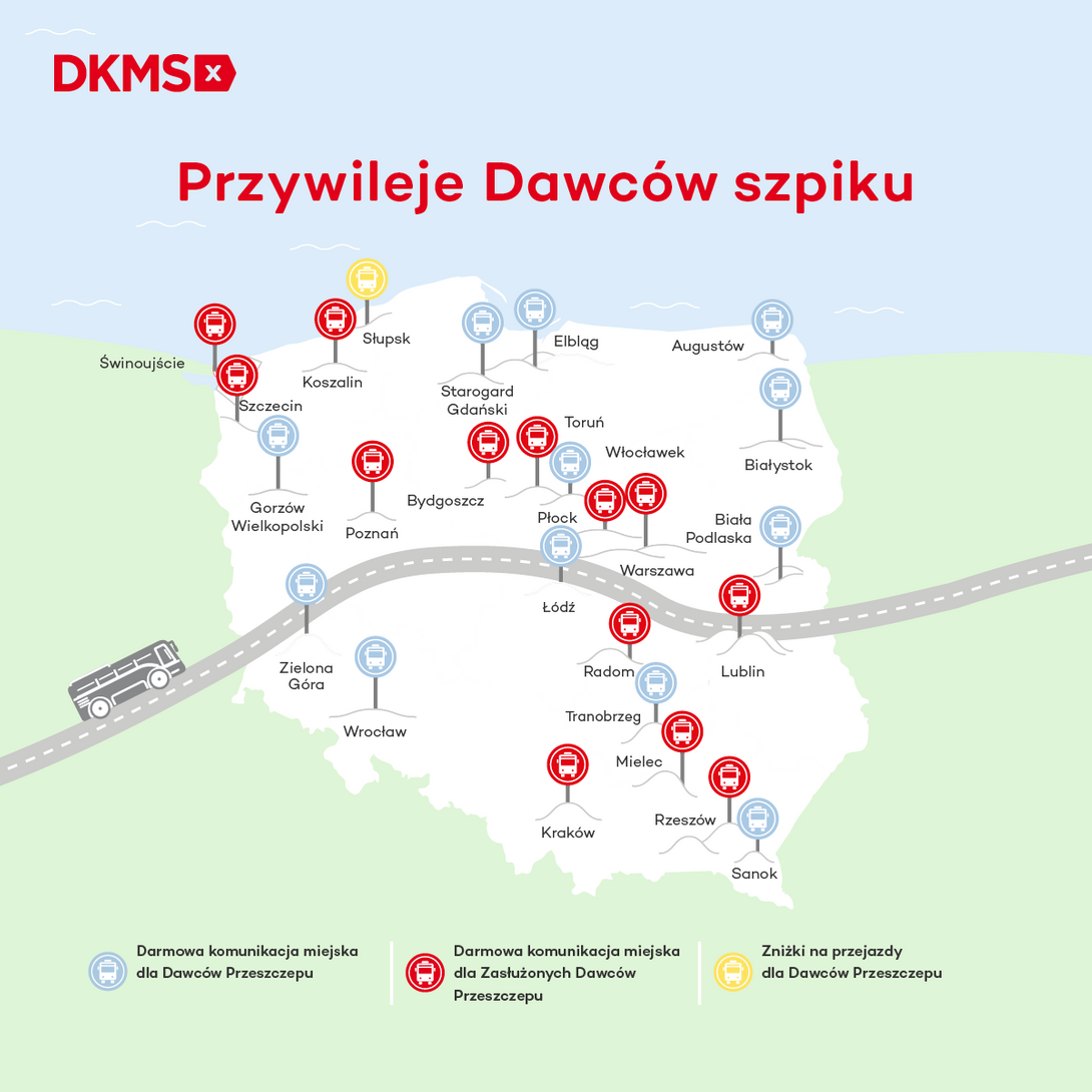 Więcej informacji na temat przywilejów dawców szpiku: https://www.dkms.pl/o-pobraniu/po-pobraniu/jakie-przywileje-ma-dawca-przeszczepu-szpiku.