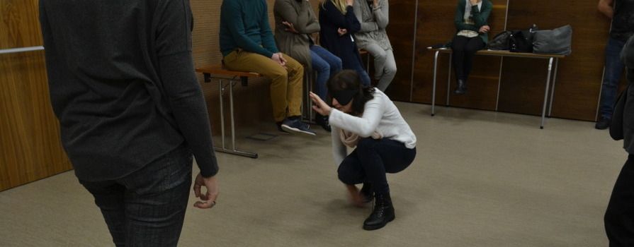 Każda z grup dostała kilka przedmiotów – metalową miskę, szklany kubeczek, tekturę, pudełko. Jedna z osób, z zamkniętymi oczami, siadała na krześle – druga trzymała przed nią wybrany przedmiot. Osoba siedząca wydając dźwięk – np. szyszyszy słuchała, jak odbija się dźwięk. I starała się ocenić, w którym miejscu przed nią znajduje się przeszkoda.