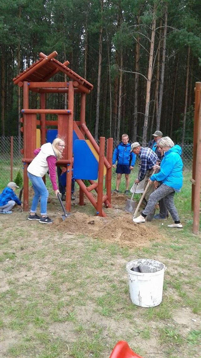 Do pracy w przygotowaniu placu oraz przy samym montażu chętnie stawili się mieszkańcy w różnym wieku. Wspólna praca połączyła bardzo liczną grupę ludzi chcących pracować na rzecz dobra wspólnego. Po zakończonej pracy został zorganizowany piknik rodzinny w organizację którego włączali się chętnie mieszkańcy. Bogato zastawione stoły kusiły najmłodszych swymi smakołykami. Wspólna zabawa to czas na rozmowę i odnowienie dawnych relacji z sąsiadami, poprzez udział w różnych konkursach i zabawach, które organizowały „dzielne mamuśki”. Był konkurs na ciasto z jabłkami, wyścigi taczek oraz tzw. bicie piany. Tym razem bicie piany było pozytywnie postrzegane.