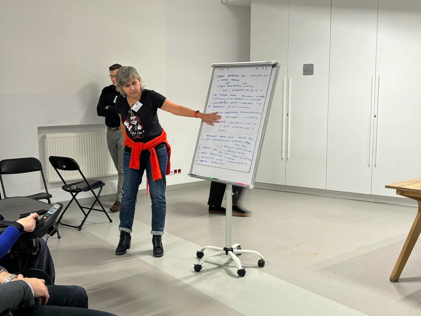M.P.: – Chociaż pamiętam nasze dyskusje, że i tak zajmujemy się łatwymi klientami, ponieważ oni wykazali chociaż minimalne zainteresowanie. Nie wyciągaliśmy ich z domów. Gdy zaczęliśmy w TUS-ie robić szkolenia w szkołach, dla dzieci, poznałam dziewczynę, która porusza się na wózku. Ostatnio, na naszych trzydziestych urodzinach ją spotkałam i mi powiedziała: „Zobacz, najpierw z wami jeździłam, potem znaleźliście mi pracę. Nie chciałam jej. Przyszłam, ot tak i po trzech miesiącach ktoś od was zadzwonił i powiedział, że ma dla mnie propozycję pracy i może jednak bym skorzystała. Było mi wstyd powiedzieć, że właściwie to ja nie chcę, więc poszłam. I pracuję tu do dzisiaj”. A ze mną jeździ po Polsce, gadamy z dziećmi i robimy różne ważne rzeczy. Takie historie też są. I to jest bardzo miłe. Wtedy widać tę ciągłość, na przykładzie pojedynczego człowieka. Taka jedna historia dużo lepiej pokazuje, co nam się udało zrobić: od momentu, kiedy ona wyszła z domu po moment, kiedy występujemy jako partnerki. To już jest zupełnie inny układ.