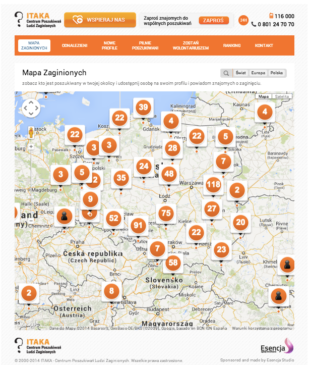 Mapa zaginionych jest aplikacją przygotowaną przez Fundację Itaka. Organizacja od lat wspiera poszukiwanie osób zaginionych.