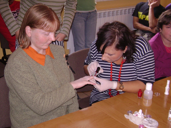 Głównym organizatorem tej imprezy była nasza pielęgniarka Pani Krystyna Świątkiewicz. Jak zawsze towarzyszyli nam nasi przyjaciele. Wśród zaproszonych gości była delegacja przyszłych pań fryzjerek z zakładu fryzjerskiego pani Zofii Korczak- Kot. Specjalistki fryzjerstwa przekazały nam cenne informacje na temat pielęgnacji włosów oraz zapoznały nas z narzędziami fryzjerskimi. Kolejnym punktem programu uroczystości była pogadanka na temat pielęgnacji skóry, tworzy, paznokci, włosów, zębów, ciała przedstawiona przez samą organizatorkę. Po części teoretycznej, przyszedł czas na praktykę. Instruktor Terapii Zajęciowej Klaudia Stankiewicz zaprezentowała pokaz malowania paznokci oraz makijażu.