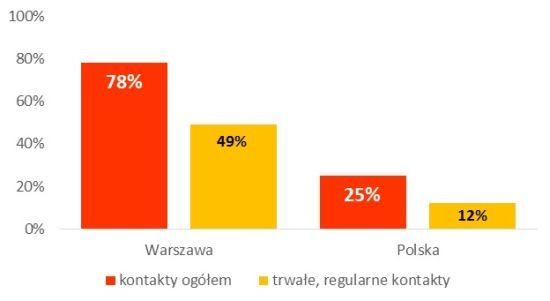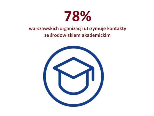 Kontakty ze środowiskiem naukowym i ekspertami ma 78% warszawskiego sektora. Dla porównania, w całym kraju ma je 49% organizacji.