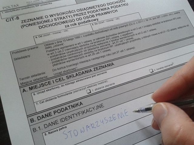 - Sporządzić deklarację CIT-8 (wraz z załącznikami CIT-8/O i CIT-D) do końca trzeciego miesiąca następnego roku podatkowego, czyli do 31 marca. Deklarację CIT-8 wraz z załącznikiem CIT-8/O (informacja o podatku dochodowym od osób prawnych) i załącznikiem CIT-D (zestawienie darowizn otrzymanych przez organizację) należy złożyć w swoim urzędzie skarbowym. Obowiązek ten dotyczy także organizacji, które nie miały żadnych przychodów w 2014 r. oraz są zwolnione z płacenia tego podatku.