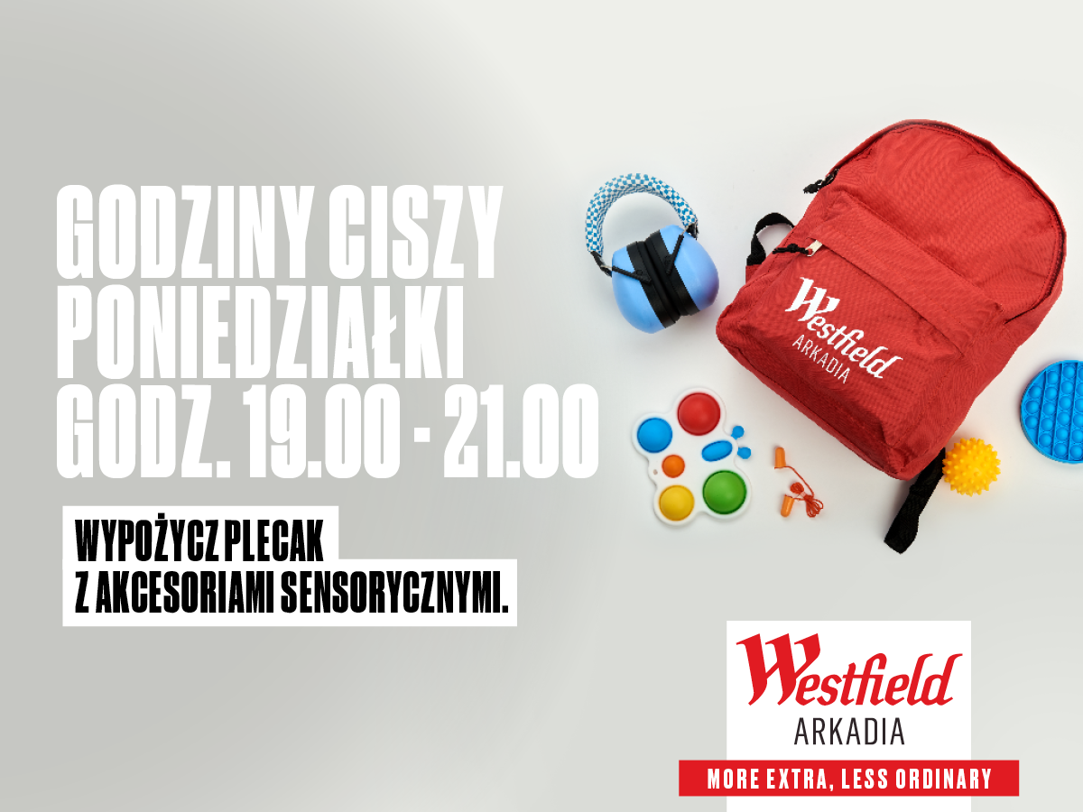 Centrum handlowe Westfield Arkadia jest świadome różnorodnych potrzeb klientów. Chce być miejscem przyjaznym także dla osób o wysokiej wrażliwości na bodźce dźwiękowe i wizualne. Dlatego w ramach „Godzin ciszy” w częściach wspólnych centrum, tam, gdzie jest to możliwe, zostaną przygaszone światła oraz wyciszona muzyka.