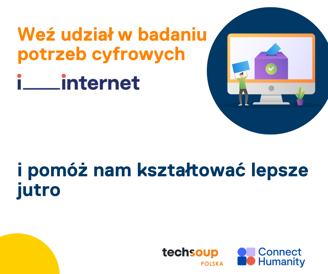 Pomimo przyśpieszającego postępu technologicznego połowa ludzkości wciąż pozostaje bez dostępu do Internetu. Czas to zmienić! TechSoup Polska zaprasza przedstawicieli organizacji pozarządowych do wzięcia udziału w największym badaniu potrzeb cyfrowych społeczeństwa obywatelskiego w historii.