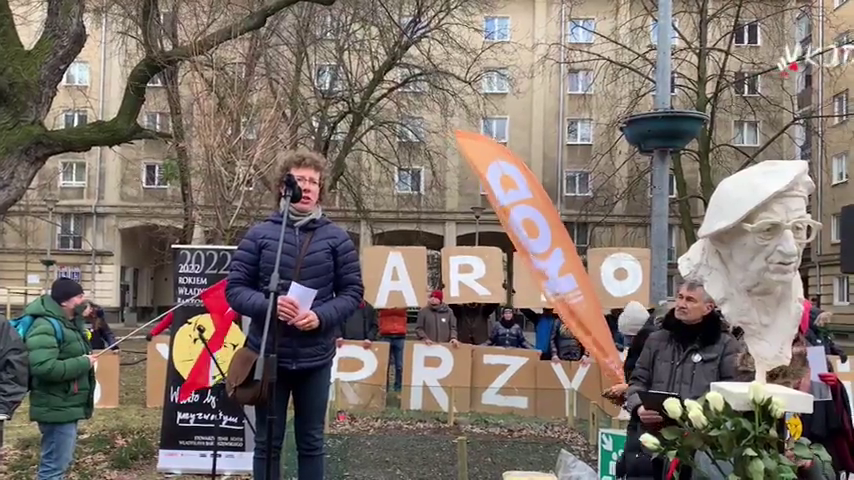 Anna Tatar ze Stowarzyszenia ‘NIGDY WIĘCEJ’ na Wiecu Przyzwoitości – stulecie urodzin prof. Władysława Bartoszewskiego: