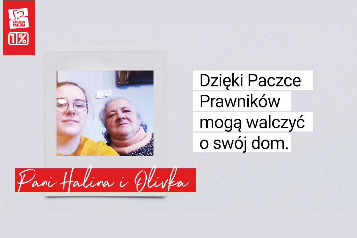 Pani Halina wychowuje samodzielnie swoją wnuczkę Olivkę. Jej rodzice nie żyją. Kobiety łączy niezwykle silna więź, ale też – niepokój o własną przyszłość. Mąż pani Haliny odszedł do innej kobiety ponad dekadę temu, zostawiając po sobie długi i roszczenia do wspólnie wyremontowanego domu. W 2019 roku nadeszło ultimatum – albo spłata nieruchomości, albo wyprowadzka. Kobiety zostałyby bez dachu nad głową, na szczęście z pomocą przyszła Szlachetna Paczka.