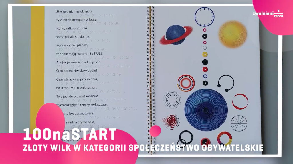 W kategorii społeczeństwo obywatelskie nagrodzono projekt „100naStart”, polegający na wydrukowaniu 150 książek z przestrzennymi obrazkami dla dzieci z dysfunkcjami wzroku. – Zdecydowaliśmy się zorganizować zbiórkę pieniędzy, by wydrukować pierwszy na świecie nakład innowacyjnych książeczek zawierających już nie tylko tekst pisany alfabetem Braille’a, ale także czarnodruk i, co najważniejsze, przestrzenne oraz kolorowe ilustracje. Finalnie wydrukowaliśmy nie sto, jak pierwotnie zakładaliśmy, ale aż 150 książeczek dotykowych. Po zakończeniu pandemii wyślemy je do 28 ośrodków, fundacji i stowarzyszeń pomagających osobom niewidomym. Z niecierpliwością czekamy na moment, gdy ucieszą one tysiące dzieci w całej Polsce i za granicą – podsumowali podczas swojej prezentacji na gali autorzy projektu z II Liceum Ogólnokształcącego im. króla Jana III Sobieskiego w Krakowie.