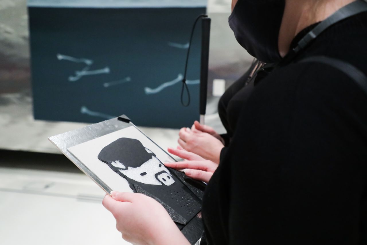 Pomocami dla osób niewidomych i słabowidzących na otwartej w czerwcu 2021 r. wystawie czasowej są tyflografiki, choć inne niż te, które znały do tej pory. We współpracy z Fundacją Wielozmysły i grupami osób z niepełnosprawnościami wzroku Muzeum POLIN opracowało wielowarstwowe materiały, które pobudzają wyobraźnię i pozwalają lepiej zrozumieć sens prezentowanego dzieła.