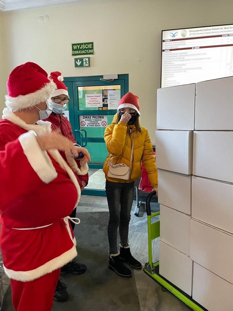 Tegoroczne Boże Narodzenie ponownie nie było typowe, ze względu na panującą pandemię. Zarówno podopieczni, ich opiekunowie, personel medyczny, jaki i pracownicy Fundacji „Krwinka” tęsknią za wspólnymi spotkaniami, tradycyjnym kolędowaniem, czy łamaniem się opłatkiem. Jak mówi Prezes Fundacji „Krwinka” Elżbieta Budny – „Bardzo smutne jest to, że w tym roku również nie mogłam osobiście złożyć życzeń tym, dla których nasza fundacja istnieje. Nasze dzieci jednak muszą wiedzieć, że z nimi jesteśmy i staramy się jak możemy, aby uprzyjemnić im ten magiczny czas. Mikołaj nie może zawieźć najmłodszych, dlatego on, jako nasz wysłannik, oczywiście w maseczce i przebadany, wyruszył z prezentami”. Tym sposobem wszystkie dzieci przebywające na oddziałach onkologicznych Uniwersyteckiego Centrum Pediatrii im. M. Konopnickiej w Łodzi zostały obdarowane cudownymi paczkami prezentowymi. Fundacja zorganizowała również wigilijne posiłki dla całych rodzin przebywających w szpitalu. Podobnie jak w ubiegłe Święta każde dziecko i przebywający wraz z nim rodzic otrzymało zestaw świąteczny, w skład którego wchodziła tradycyjna zupa grzybowa, pierogi, ryba, świąteczne ciasta i owoce.
