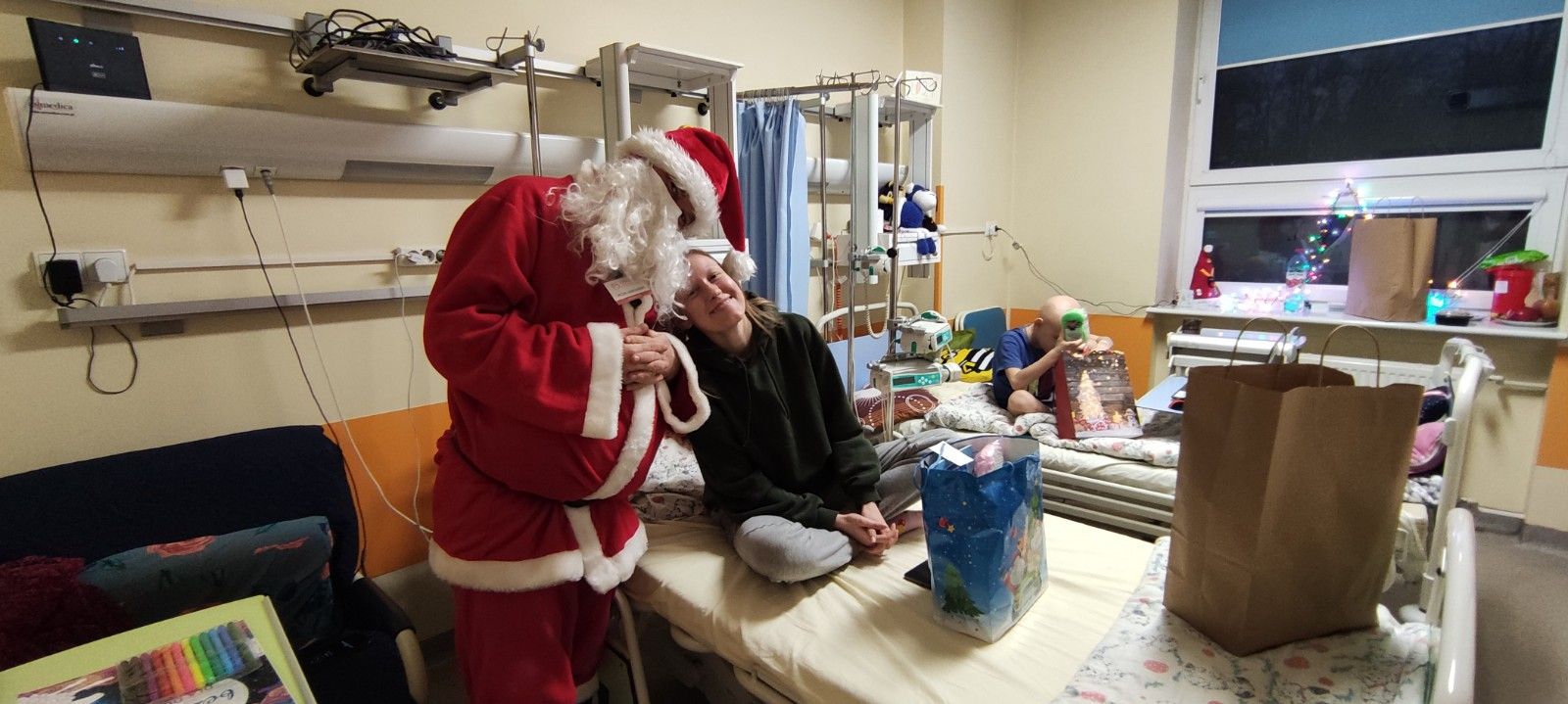 Święta w szpitalu nie będą takie same, bezpośrednie spotkania z małymi pacjentami, wspólne kolędowanie, czy tym bardziej łamanie się opłatkiem pozostają w sferze marzeń. Jak mówi Prezes Fundacji „Krwinka” Elżbieta Budny: „Bardzo smutne jest to, że w tym roku nie mogłam osobiście złożyć życzeń tym, dla których nasza fundacja istnieje. Nasze dzieci jednak muszą wiedzieć, że z nimi jesteśmy i staramy się jak możemy, aby uprzyjemnić im ten magiczny czas. Mikołaj nie może zawieźć najmłodszych, dlatego on, jako nasz wysłannik, oczywiście w maseczce i przebadany, wyruszył z prezentami”.