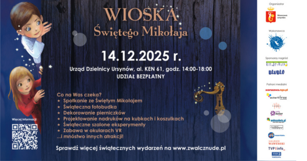 Wioska Świętego Mikołaja czeka na was 14 grudnia 2025 roku (niedziela), od godziny 14:00 do 18:00 w Urzędzie Dzielnicy Ursynów przy alei Komisji Edukacji Narodowej 61.
