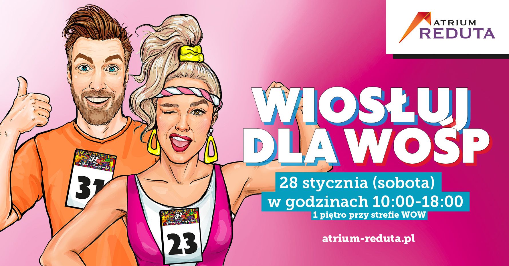 Wiosłowanie dla WOŚP we wszystkich miastach wystartuje 28 stycznia. W Atrium Reduta wydarzenie rozpocznie się o godz. 10.00 wioślarskimi zmaganiami z udziałem publiczności. Przez cały dzień klienci odwiedzający galerię będą mogli spróbować swoich sił w wiosłowaniu na ergometrze wioślarskim, usytuowanym na 1. piętrze przy strefie WOW. Do rywalizacji dołączą także medaliści Olimpijscy, mistrzostw świata i Europy, politycy oraz przedstawiciele urzędów miast. Sztafety VIP zaplanowano na godzinę 12:00 w Atrium Targówek i godzinę 14:00 w Reducie.