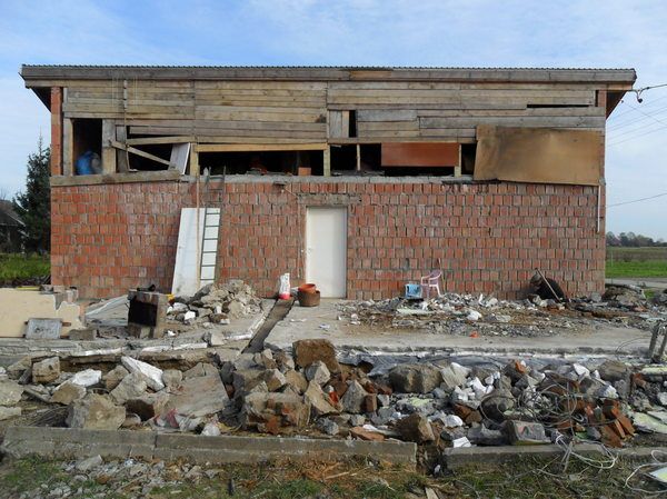 Ostatnia z odwiedzonych przez nas rodzin w domu straciła cały dom. Mieszkała z trójką małych dzieci (2 do 6 lat), dziadkami i szwagrem. Teraz dziadkowie z dorosłym synem żyją w dostosowanym do warunków mieszkalnych garażu, a rodzina z małymi dziećmi w przybudówce.