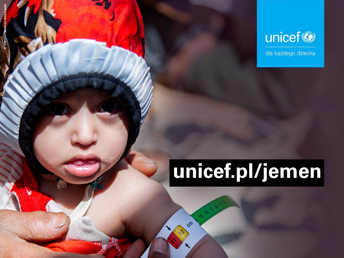 Wojna w Jemenie to największy kryzys humanitarny w XXI wieku. 80% mieszkańców potrzebuje pomocy humanitarnej. Szacuje się, że 2 miliony dzieci w tym kraju jest poważnie niedożywionych. UNICEF Polska rozpoczyna kampanię „Pomoc dla Jemenu” i apeluje o wsparcie poprzez stronę unicef.pl/jemen. Akcję wspiera Maciej Orłoś.