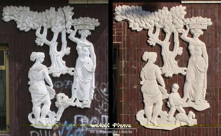 Płaskorzeźba jest jednym z ostatnich zachowanych elementów powojennej aranżacji ulicy Katowickiej. Z powstałej w końcu lat 40. dekoracji – m.in. niewielkich rzeźb i betonowych ław - do naszych czasów przetrwały tylko nieliczne elementy. Sama płaskorzeźba jeszcze niedawno była pozbawiona kilku fragmentów i pomazana przez wandali.