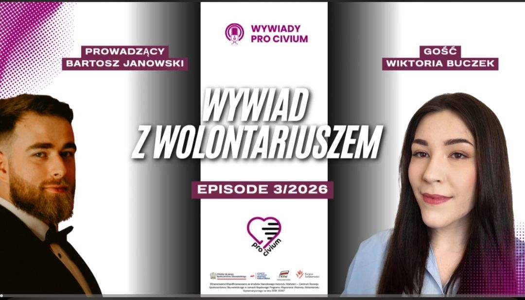 Jeżeli komuś wydaje się, że wolontariusz to gapa, rozdający ulotki, bo nie potrafi inaczej zorganizować sobie czasu wolnego, to zapraszamy do wysłuchania wywiadu z mgr Wiktorią Buczek, z-cą Dyrektora I Pionu Wsparcia Rodzin Osób Pozbawionych Wolności i Osadzonych Centrum Poradnictwa w Stowarzyszeniu Inicjatywa Obywatelska Pro Civium, z wykształcenia psychologa. Rozmowę przeprowadził Bartosz Janowski z Wydawnictwa Pro Civium.