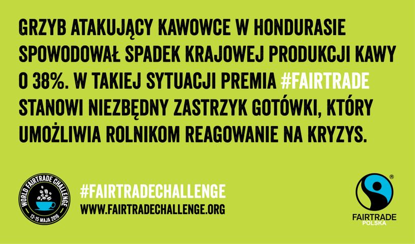 (PAP) Od Nowej Zelandii po Polskę, od RPA po Hiszpanię - między 13 a 15 maja br. kawosze z ponad 15 państw świata symbolicznie połączą siły w ramach akcji World Fairtrade Challenge, wypijając w sumie ponad 5 milionów filiżanek kawy Fairtrade. Celem akcji jest zamanifestowanie solidarności z rolnikami uprawiającymi kawę w krajach globalnego Południa, którzy zmagają się ze skutkami zmian klimatu.