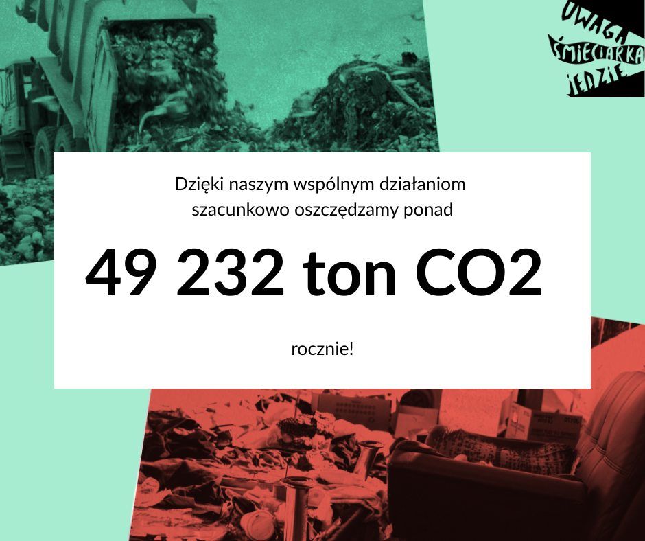 Fundacja Uwaga, Śmieciarka Jedzie, koordynująca pracę trzystu ogólnopolskich grup lokalnych na Facebooku pod tą samą nazwą, we współpracy z firmą TerGo, opublikowała wyniki nowego badania wpływu swoich działań na redukcję emisji dwutlenku węgla (CO2). Zgodnie z raportem, dzięki codziennym praktykom ponownego użycia rzeczy przez społeczność Śmieciarki, udało się szacunkowo zaoszczędzić 49 232 ton CO2 rocznie.