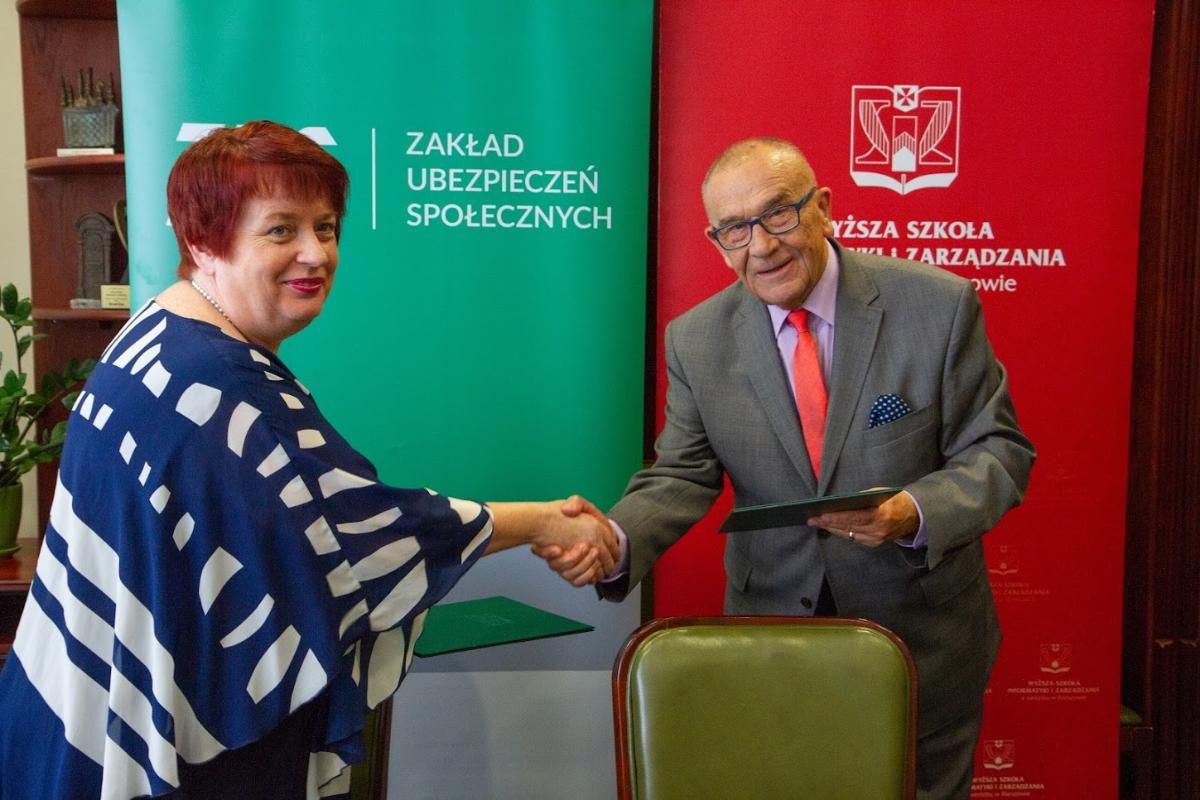 Porozumienie o współpracy podpisał dr Wergiliusz Gołąbek, Rektor Wyższej Szkoły Informatyki i Zarzadzania w Rzeszowie oraz Ewa Papiewska-Borkowska, Dyrektor Zakładu Ubezpieczeń Społecznych Oddział w Rzeszowie.