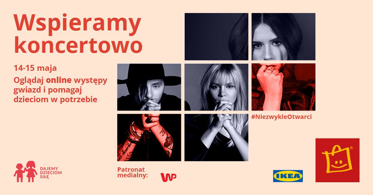 Grupa Ingka (obejmująca m.in. Ingka Centres oraz IKEA Retail Polska) w ramach wsparcia Fundacji Dajemy Dzieciom Siłę, zorganizuje dwa wyjątkowe wydarzenia. Do niedawna koncerty były zwyczajnym elementem naszej codzienności, obecnie mamy okazję, aby odkrywać je na nowo. Dlatego Ingka Centres w ramach działań pod hasłem #WSPIERAJMYSIĘ zaprasza na koncerty online na żywo, podczas których wystąpią Roksana Węgiel oraz zespół Blue Café. Oba koncerty transmitowane będą na profilach Facebook centrów handlowych: warszawskiego Wola Parku, wrocławskiej Alei Bielany, Portu Łódź, Parku Handlowego Matarnia w Gdańsku oraz SKENDE Shopping w Lublinie. W czwartek, 14 maja o godzinie 19.00, rozpocznie się koncert zespołu Blue Café. Dzień później, w piątek, 15 maja o tej samej godzinie, wystąpi Roksana Węgiel. Patronat medialny nad koncertami objęła Wirtualna Polska.
