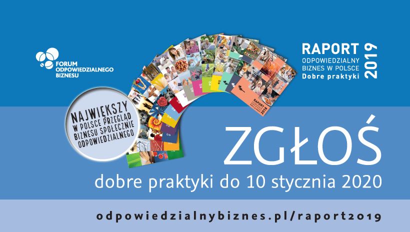 Raport „Odpowiedzialny biznes w Polsce. Dobre praktyki” to największy w Polsce przegląd odpowiedzialnego biznesu w danym roku. Jego najobszerniejszą część stanowią realizowane przez firmy działania CSR. Zgłaszanie dobrych praktyk trwa do 10 stycznia i odbywa się poprzez formularz http://odpowiedzialnybiznes.pl/raport2019. Zakwalifikowane praktyki (w poprzedniej edycji ponad 1500) tworzą mapę pozytywnego oddziaływania biznesu. Stanowią zbiór inspiracji dla organizacji, które również chcą wprowadzać rozwiązania CSR. Lista firm zgłaszających działania to z kolei przekrojowe zestawienie różnego typu przedsiębiorstw, które dzięki raportowi mogą szerzej docierać z informacją o wdrażanych inicjatywach.