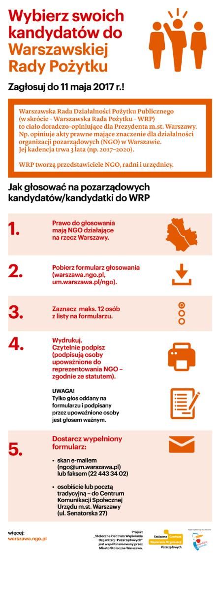 Cały czas trwają wybory na przedstawicieli NGO do IV kadencji Warszawskiej Rady Pożytku. Z tej okazji przygotowaliśmy specjalną infografikę, która wyjaśnia, w jaki sposób należy oddać swój głos.