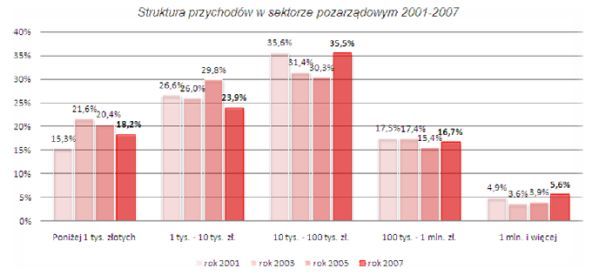 2007 roku przychody połowy organizacji przekroczyły 18 tys. (w 2005