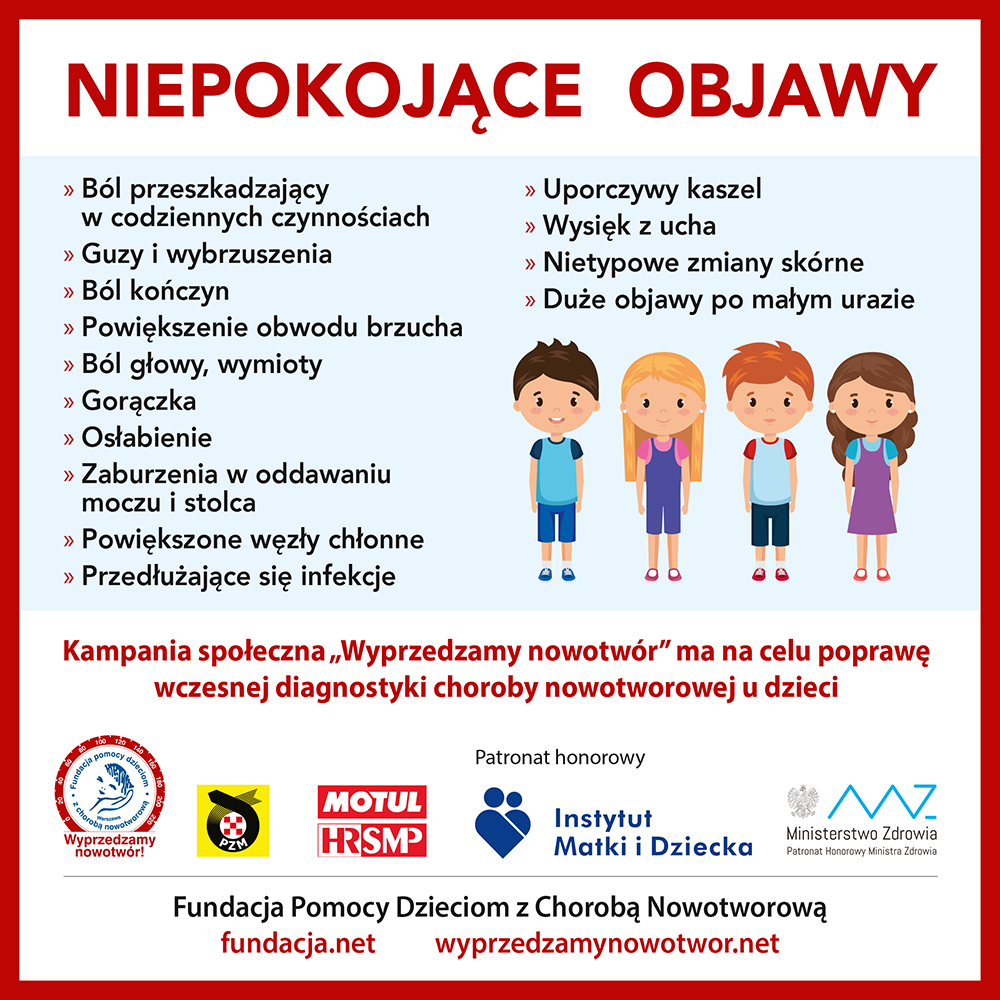 "Znajomość wczesnych objawów nowotworów u dzieci, obserwacja dziecka, samokontrola wśród młodzieży, tzw. bilanse pediatryczne… to wszystko jest ogromnie ważne i pomaga rozpoznać chorobę na wczesnym etapie" – przypomina Emilia Kotarska.