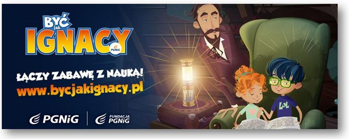 www.bycjakignacy.pl, na której znajdują się materiały edukacyjne: filmy dydaktyczne i komiks przywołujący epizody z życia polskiego wynalazcy. Krótkie filmy z udziałem naukowców w prosty sposób przedstawiają ciekawe zjawiska. Dzieci mogą w ten sposób dowiedzieć się, jak nasze codzienne życie zmienia się dzięki nauce. W interaktywnym komiksie Ignacy jest przewodnikiem dzieci po świecie odkryć. Bohater przeniesiony z prawdziwej historii na karty książki opowiada o swoim dzieciństwie, młodości i drodze do przełomowego odkrycia. Oprócz filmów i publikacji edukacyjnych Fundacja PGNiG przygotowała animowaną grę przygodową. Zadaniem graczy jest zbudowanie kopalni, a poprzez pokonywanie kolejnych poziomów poznają oni historię przemysłu naftowo-gazowego. Komiks „Być jak Ignacy” oraz gra „Kopalnie Ignacego” są dostępne za darmo w formie aplikacji na urządzenia mobilne. 25 października 2016 r. w księgarniach dostępna będzie także książka „Być jak Ignacy”.