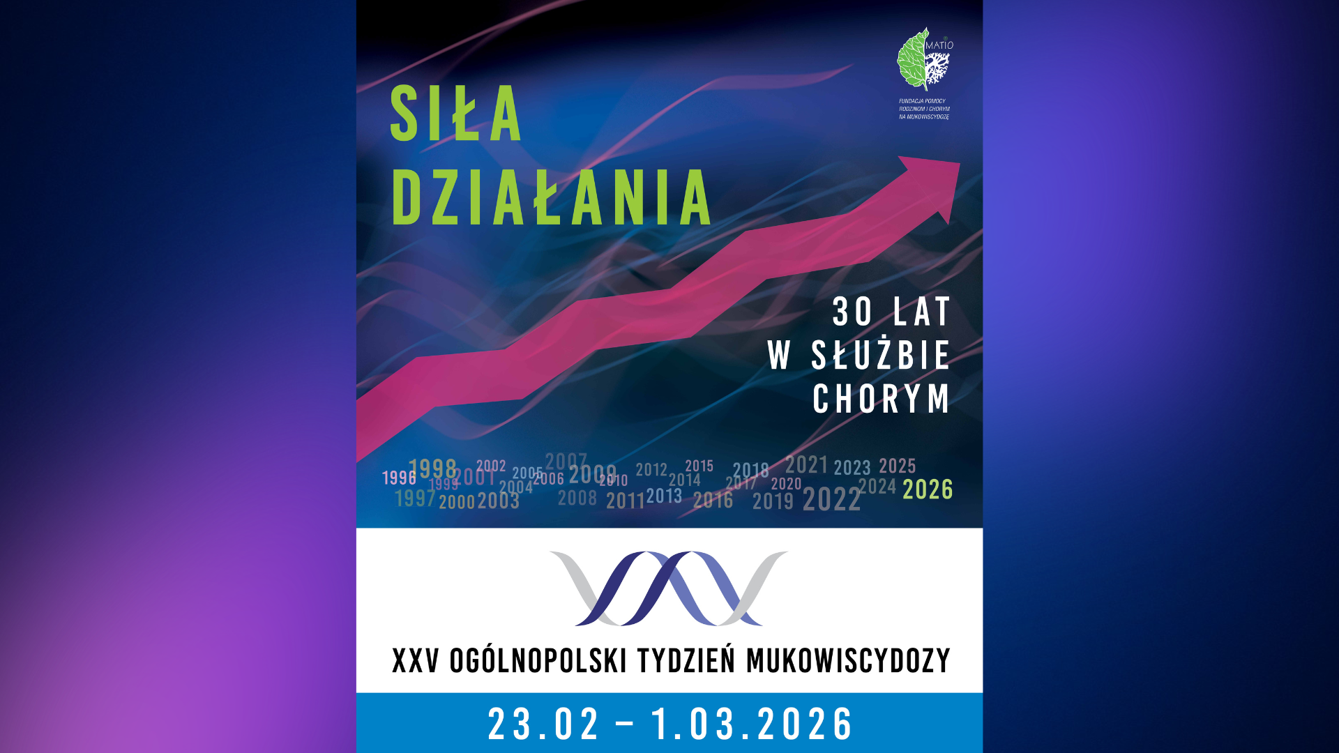 Fundacja MATIO zaprasza do udziału w XXV Ogólnopolskim Tygodniu Mukowiscydozy – kampanii społeczno-edukacyjnej poświęconej zwiększaniu świadomości na temat mukowiscydozy, wsparciu osób nią dotkniętych oraz promocji badań naukowych, nowoczesnych terapii i działań systemowych. Hasło tegorocznej edycji brzmi: „Mukowiscydoza – 30 lat w służbie chorym – siła działania”.