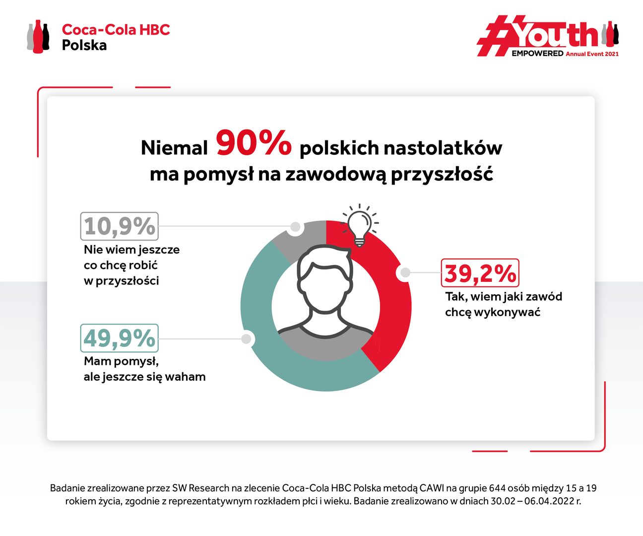 Młodzi Polacy mają już przemyślane zawodowe plany na przyszłość, jednak większość z nich potrzebuje wsparcia w podjęciu ostatecznej decyzji. Firma Coca-Cola HBC, która w ramach swojej strategii zrównoważonego rozwoju wspiera młodych w przygotowaniu do wejścia na rynek pracy, sprawdziła potrzeby polskich nastolatków szukających swojej ścieżki kariery.