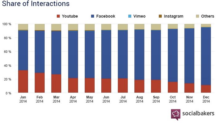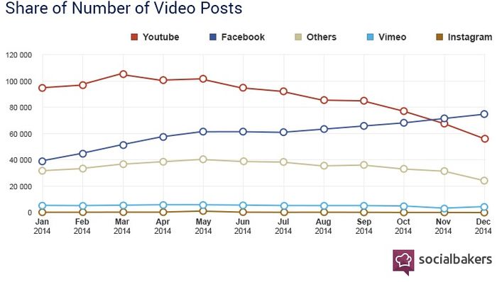 Jeśli spojrzeć na przygotowane przez Socialbakers statystyki, kryzys YouTube’a rozpoczął się w styczniu zeszłego roku, natomiast apogeum osiągnął w listopadzie, kiedy to Facebook wyprzedził serwis Google aż o 5 tysięcy wrzuconych filmów. Może wydawać się, że 5 tysięcy w skali dziesiątek milionów to niewiele, ale Facebook w ciągu roku podwoił swoje udziały w rynku wideo. To wynik, którego można zazdrościć!