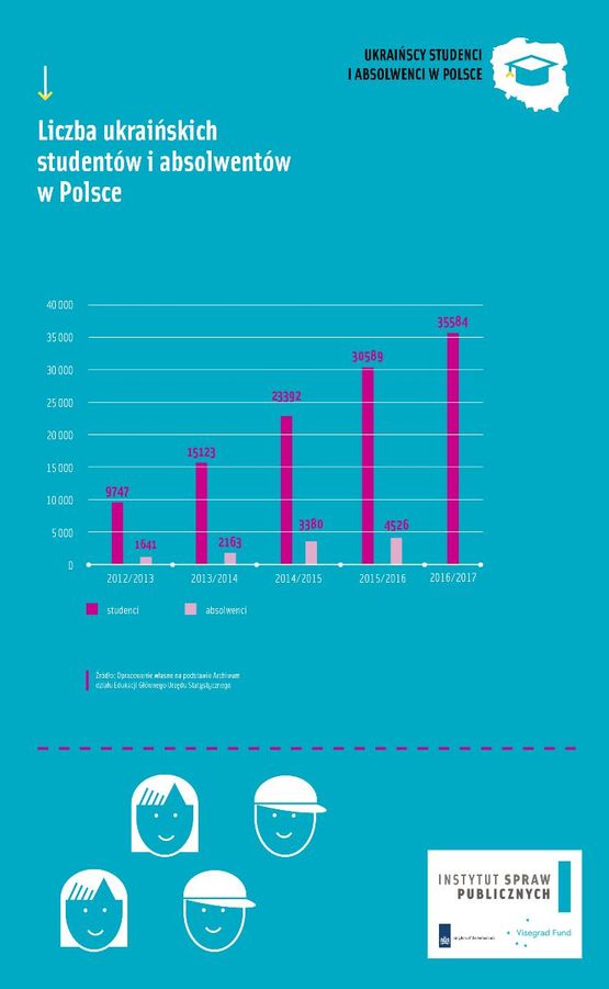 Na polskich uczelniach studiuje już ponad 35 tysięcy Ukraińców. Młodzi ludzie z Ukrainy przyjeżdżają do Polski ze względu na niższe koszty życia i studiów oraz lepsze perspektywy znalezienia pracy. Wielu z nich chciałoby zostać w Polsce, jednak duża grupa woli udać się do innych krajów UE – wynika z najnowszego badania Instytutu Spraw Publicznych.