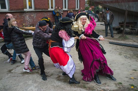 Statek budowany przez osoby bezdomne w Ursusie wkrótce trafi do stoczni na Żeraniu. W piątek, 19 października, na pożegnanie z lądem opanowali go piraci i piratki.