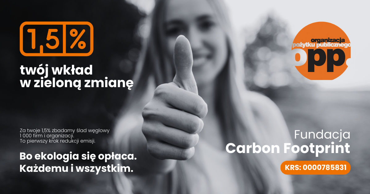 Fundacja Carbon Footprint chce pomóc przedsiębiorstwom rozpocząć strategię dekarbonizacji. Fundacja zadeklarowała, że środki pozyskane z 1,5% podatku przeznaczy na obliczenie śladu węglowego tysiąca firm i organizacji.
