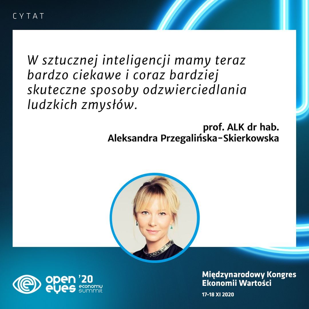 Ścieżką tematyczną elektryzującą wszystkich uczestników oraz cieszącą się największym zainteresowaniem była ta zatytułowana „Człowiek w środowisku sztucznej inteligencji”. Jedną z jej uczestniczek była prof. Aleksandra Przegalińska-Skierkowska, jedna z najbardziej uznanych na świecie ekspertek w zakresie sztucznej inteligencji. Prorektor Akademii Leona Koźmińskiego wskazywała, że sztuczna inteligencja działa już teraz. Sporo emocji wywołał fragment jej wystąpienia, w którym profesor Przegalińska pokazywała, że sztuczna inteligencja w bardzo ciekawy i coraz bardziej skuteczny sposób odzwierciedla ludzkie zmysły.