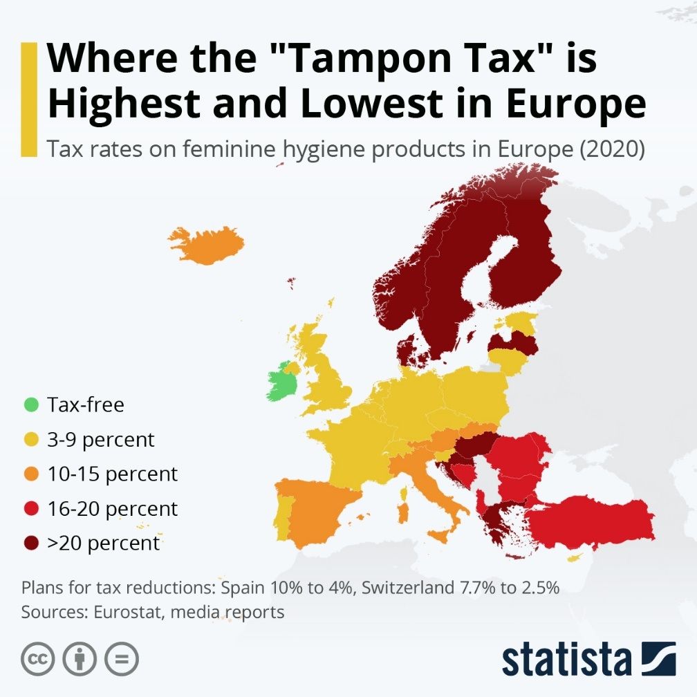Wiele krajów podejmuje działania mające na celu zniesienie podatku od tamponów, kubeczków menstruacyjnych, podpasek i wkładek higienicznych. Argumentem przeciwko podatkowi od tamponów jest to, że tampony i podpaski nie są dobrami luksusowymi, ale produktami pierwszej potrzeby. Jeszcze jednym argumentem mogącym odnieść skutek legislacyjny jest fakt, że podatek od produktów menstruacyjnych zwiększa nierówność między kobietami i mężczyznami.