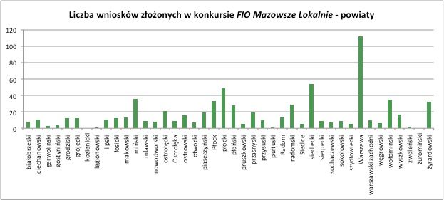 Konkurs swoim zasięgiem objął obszar województwa mazowieckiego. W konkursie wzięły udział podmioty z 42 powiatów. Z interpretacji danych wynika, że największe zaangażowanie obywateli w życie publiczne widoczne jest w dużych miastach, trzeba jednak uwzględnić istotne do interpretacji czynniki, takie jak np. liczba organizacji pozarządowych w danej miejscowości, czy liczba mieszkańców. Najwięcej wniosków spłynęło z miasta stołecznego Warszawy – 112 (16%), powiatu siedleckiego – 54 (8%) oraz powiatu płockiego – 49 (7%).