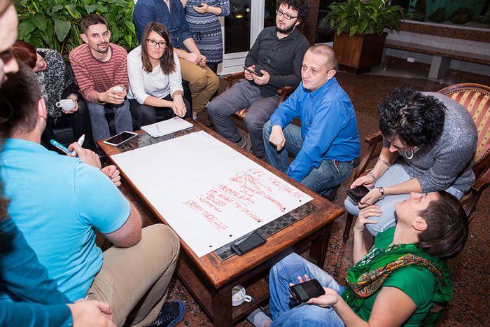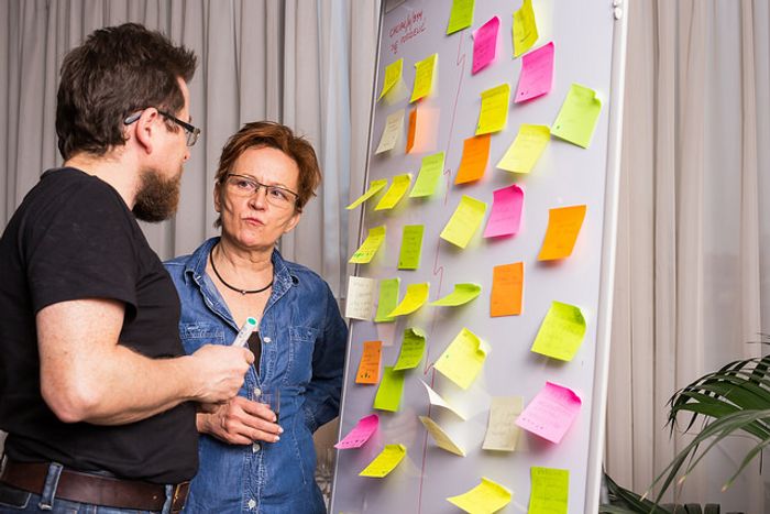 - Próbowaliśmy zdiagnozować problemy technologiczne. Każdy z uczestników wziął na warsztat swoje wyzwanie, które będzie przed nim stało w najbliższym miesiącu, kwartale lub roku, dowolnie - opowiada Bartosz Narzelski, projektant usług i komunikacji z Laboratorium EE. - Za pomocą kilku narzędzi, które pomagają w procesie projektowym, rozpisywali swoje problemy i wyzwania, nazywając je po imieniu.