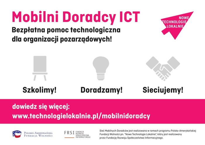 Mobilni Doradcy są częścią programu Nowe Technologie Lokalnie, realizowanego przez Fundację Rozwoju Społeczeństwa Informatycznego, a powołanego przez Polsko-Amerykańską Fundację Wolności.