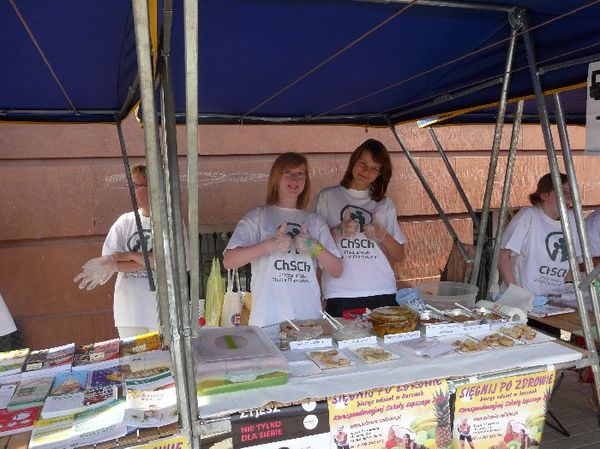 Tak było również ostatnio, podczas odbywającego się w Nowym Bytomiu XI Międzynarodowego Festiwalu Orkiestr Dętych im. Augustyna Kozioła. Dzięki przychylności władz miasta oraz współpracy z Powiatową Stacją Sanitarno-Epidemiologiczną w Rudzie Śląskiej przedstawiciele lokalnej filii ChSCh na rudzkim rynku prowadzili bezpłatne badania, degustację zdrowych potraw i rozdawali broszurki popularyzujące zdrowy styl życia. A zmierzyć można było: tkankę tłuszczową, zawartość wody w organizmie, wydolność płuc i poziom dwutlenku węgla w wydychanym powietrzu. Każdy uczestnik miał też okazję skosztować klopsów z kaszy jaglanej czy pieczywa domowego wypieku.